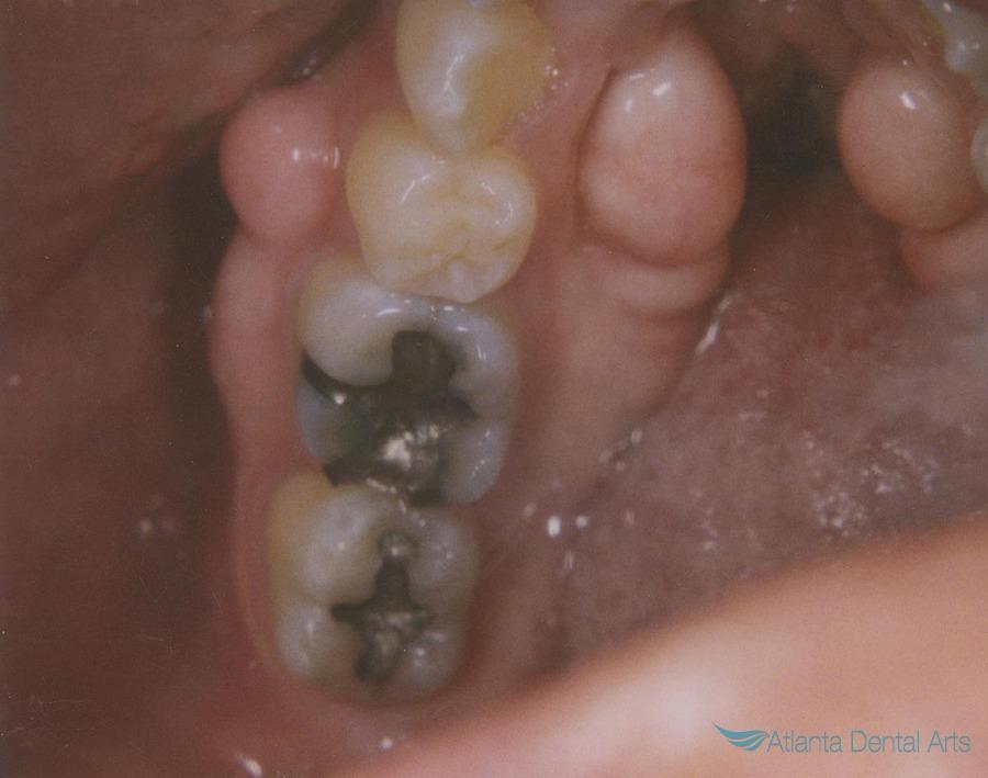 Posterior composite fillings( white fillings on back teeth) The same type of filling material used to do bondings and fillings on front teeth can be used to fill back teeth. Traditionally, Amalgam fillings were considered the only choice for fillings on back teeth. These fillings are the greyish fillings you see in other people’s mouths, or may have in your own. They are made primarily of mercury and silver. Now, many dentists like myself use tooth colored or composite fillings, and are having great success with them. Over the years there has been much controversy over amalgam verses composite fillings, but I have made the choice for a variety of reasons to not use amalgam in my practice. Here are some examples of fillings I have done with composite. Crowns and composite fillings were used as the restorative options in two of these cases. I will explain which ones are crowns and which ones are fillings under the individual cases.